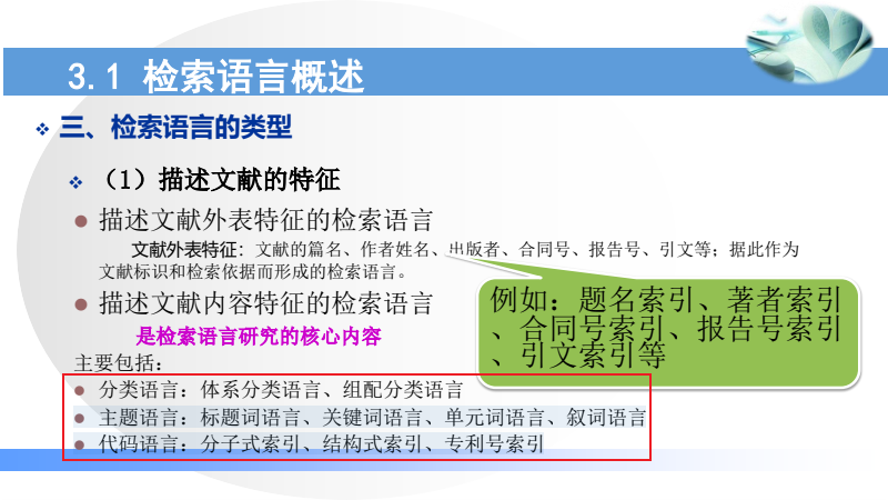 7.描述文献特征的检索语言主要包括:(代码)语言、(分类)语言和(主题)语言。