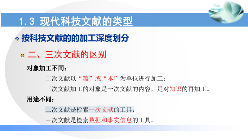 新颖性、创造性、系统性是一次文献的特点,不是二次文献