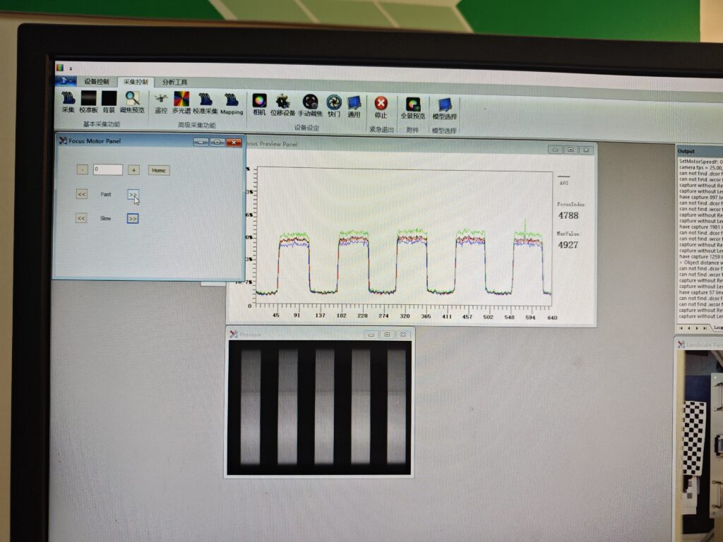 10.再次点击调焦预览-开始,此时波纹应呈现方形。如果对波纹形状需要调整,点击“手动调焦”,此时出现Focus Motor Panel。只需操作Fast和Slow两行4个按钮即可。其中,Fast是粗调,Slow是微调。根据实际情况尽可能将波形调整为方形即可。