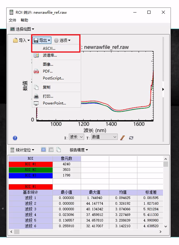 24.点击【导出】-ASCII。即可获得高光谱数据。