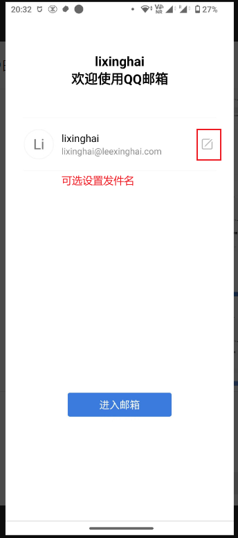 7.上述配置完成后基本完成,有需要的用户可以设置邮件发件名为自己名字或其他名称,默认为【名字拼音】。如图7所示。