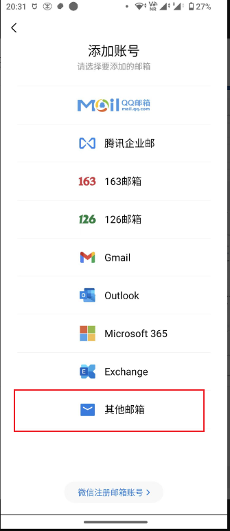 2.在添加账号界面选择”其他邮箱“,如图2所示。