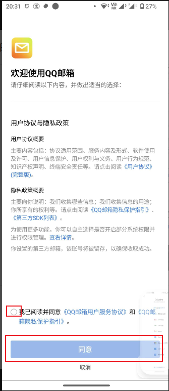 3.同意用户协议(其他邮箱类似或没有),如图3所示。