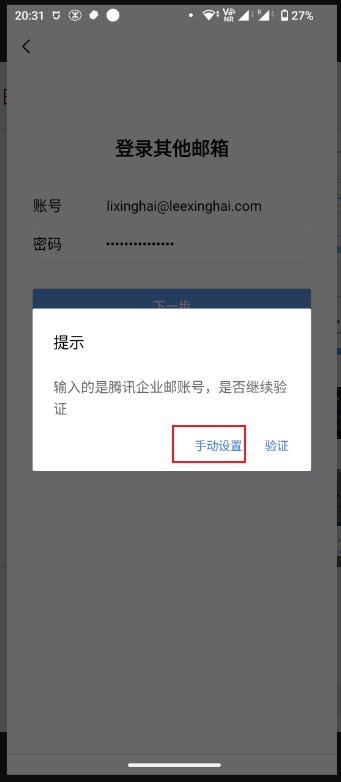 5.下一步,选择”手动设置“(其他邮箱软件类似),如图5所示。